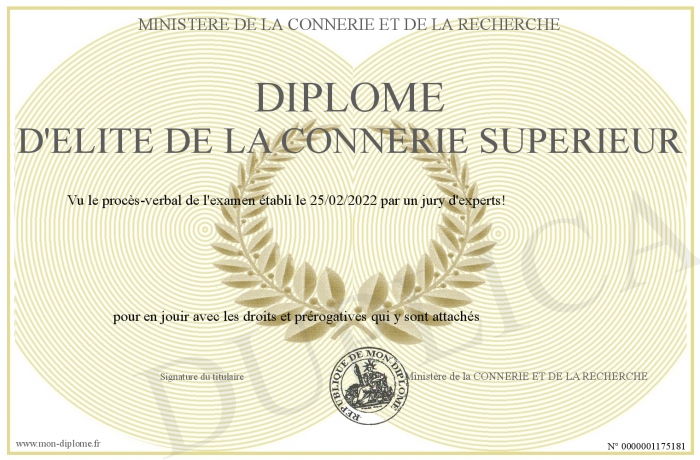 Envoyez par email votre Diplome d'élite de la connerie supérieur personalisé