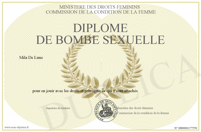 Envoyez par email votre Diplôme de Bombe sexuelle personalisé