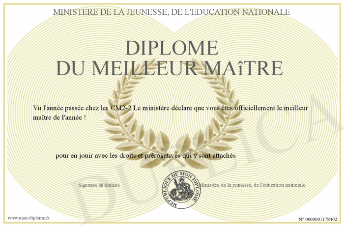 Envoyez par email votre diplôme du meilleur maître personalisé