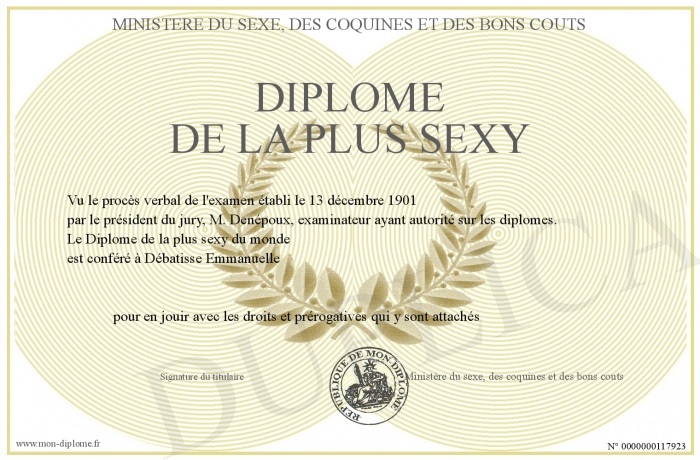 Envoyez par email votre Diplôme de la plus sexy personalisé