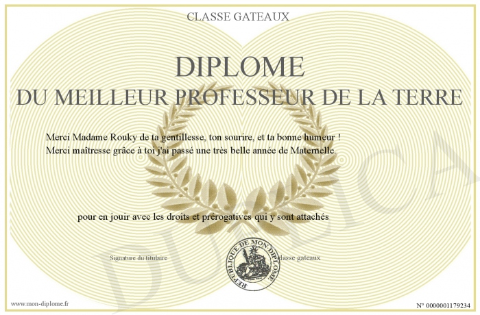 Envoyez par email votre Diplôme du meilleur professeur de la terre personalisé