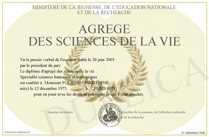 Envoyez par email votre agrégé des sciences de la vie personalisé