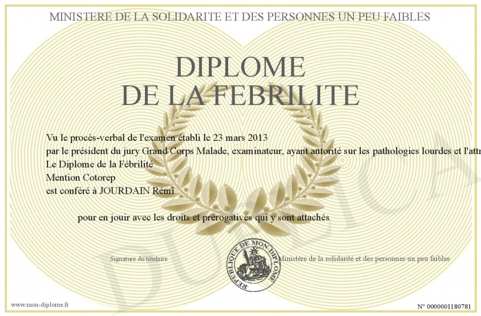 Envoyez par email votre Diplôme de la Fébrilité personalisé