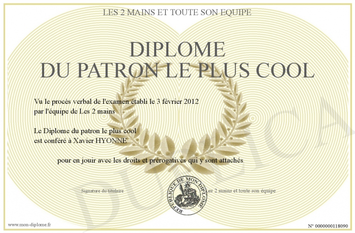 Envoyez par email votre Diplôme du patron le plus cool personalisé