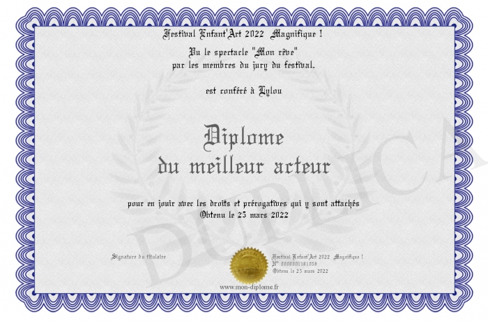 Envoyez par email votre Diplôme du meilleur acteur personalisé