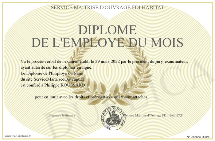 Envoyez par email votre Diplôme de l'Employé du Mois personalisé