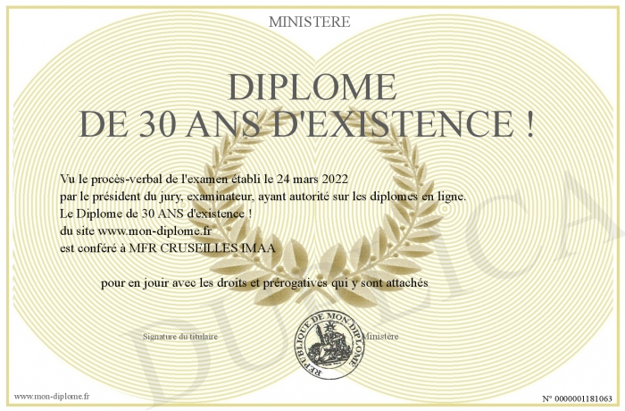 Envoyez par email votre Diplôme de 30 ANS d'existence ! personalisé