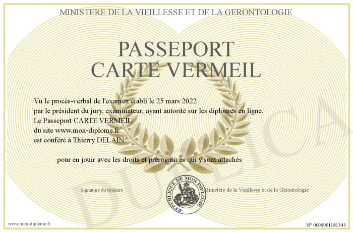 Envoyez par email votre Passeport CARTE VERMEIL personalisé