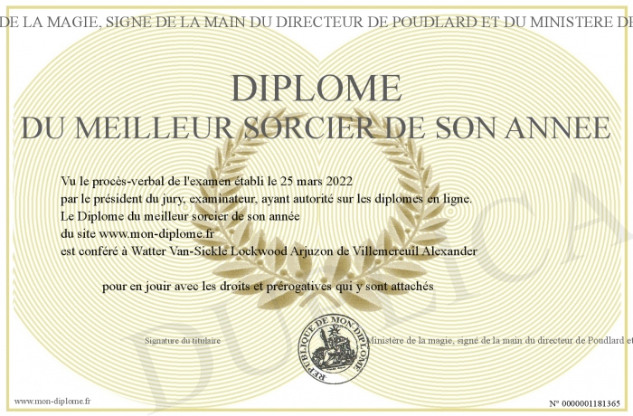 Envoyez par email votre Diplôme du meilleur sorcier de son année personalisé