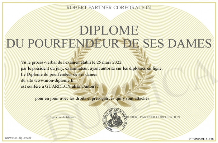 Envoyez par email votre Diplôme du pourfendeur de ses dames personalisé