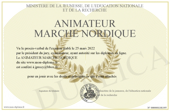 Envoyez par email votre ANIMATEUR MARCHE NORDIQUE personalisé