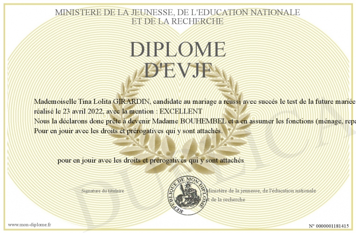 Envoyez par email votre Diplôme d'EVJF personalisé
