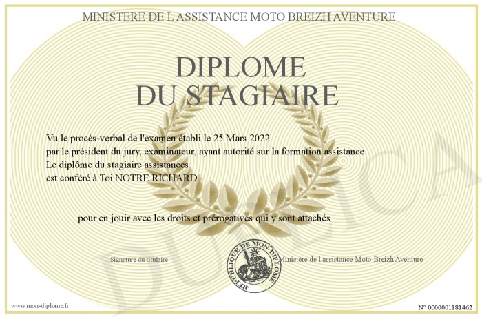 Envoyez par email votre Diplôme du Stagiaire personalisé