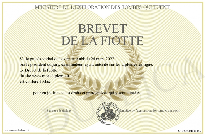 Envoyez par email votre Brevet de la Fiotte personalisé
