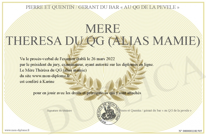 Envoyez par email votre Mère Thérèsa du QG (alias mamie) personalisé
