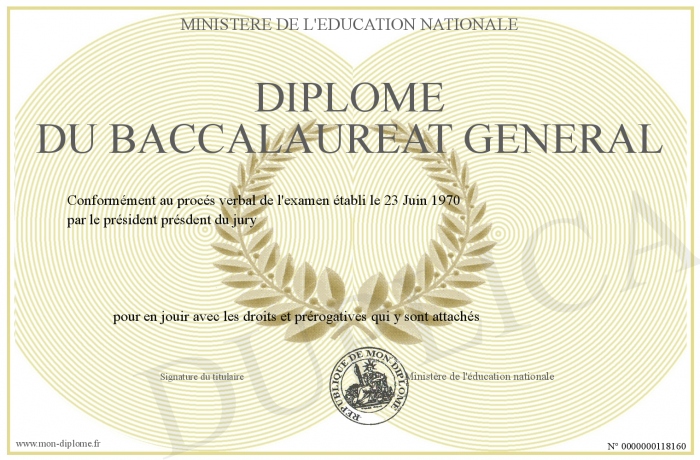 Envoyez par email votre Diplôme du baccalaureat général personalisé