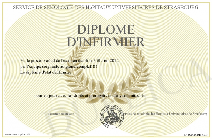 Envoyez par email votre Diplome d'infirmier personalisé
