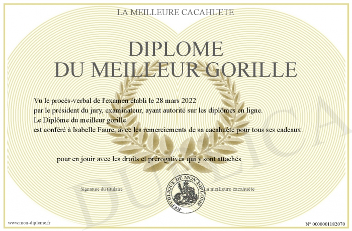 Envoyez par email votre Diplôme du meilleur gorille personalisé