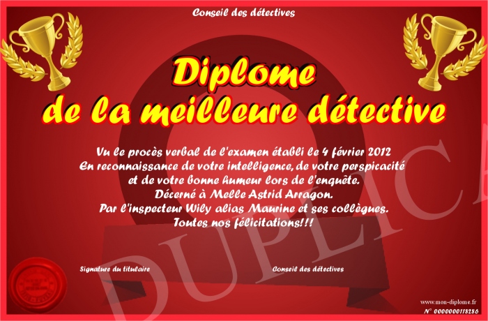 Envoyez par email votre Diplôme de la meilleure détective personalisé