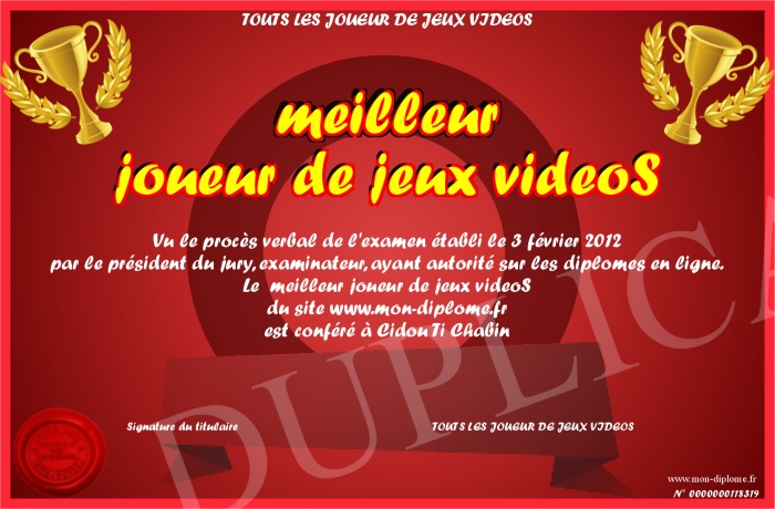 Envoyez par email votre meilleur joueur de jeux videoS personalisé