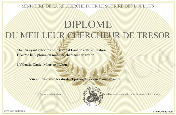 Envoyez par email votre Diplôme du meilleur chercheur de trésor personalisé