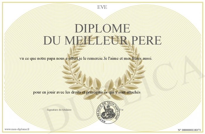 Envoyez par email votre Diplôme du meilleur père personalisé