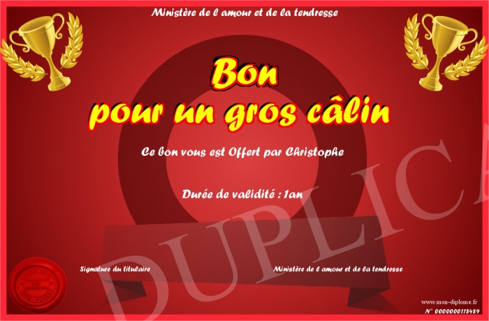 Envoyez par email votre Bon pour un gros câlin personalisé