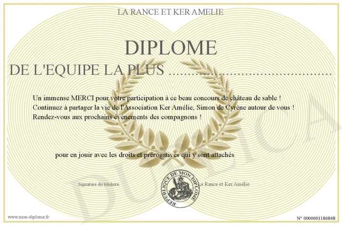 Envoyez par email votre Diplôme de l'équipe la plus ........................................... personalisé