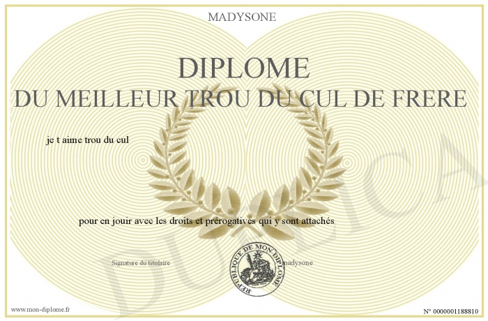 Envoyez par email votre Diplôme du meilleur trou du cul de frère personalisé