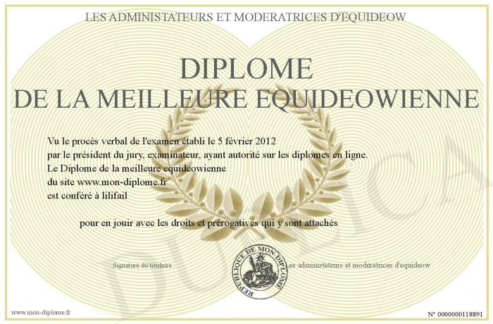 Envoyez par email votre Diplôme de la meilleure equideowienne personalisé