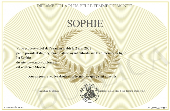 envoyé par le Diplôme de La plus belle femme du monde !
