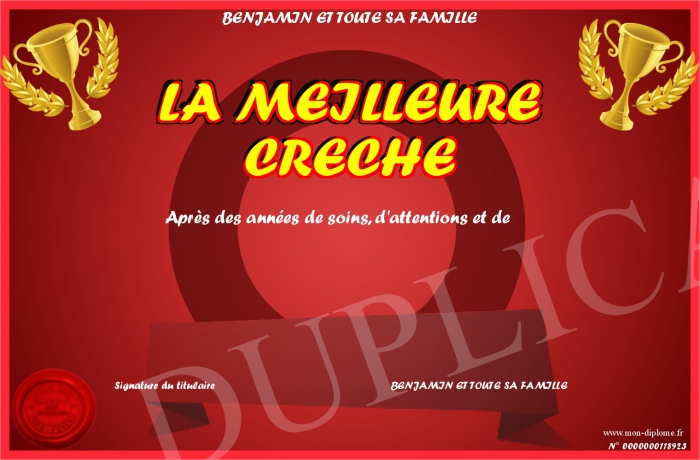 Envoyez par email votre LA MEILLEURE CRECHE personalisé