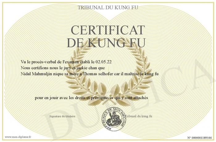 Envoyez par email votre Certificat de Kung fu personalisé