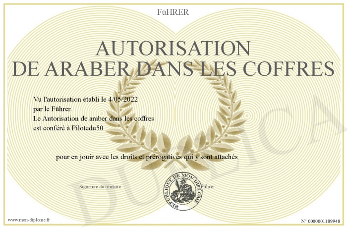 Envoyez par email votre Autorisation de araber dans les coffres personalisé