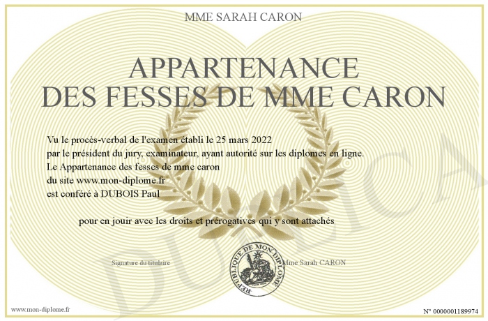 Envoyez par email votre Appartenance des fesses de mme caron personalisé