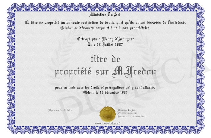 Envoyez par email votre titre de propriété sur M.Fredou personalisé