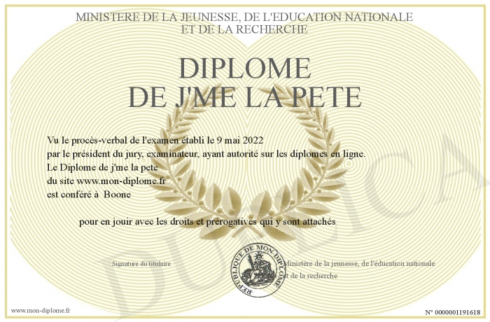 Envoyez par email votre Diplôme de j'me la pete personalisé