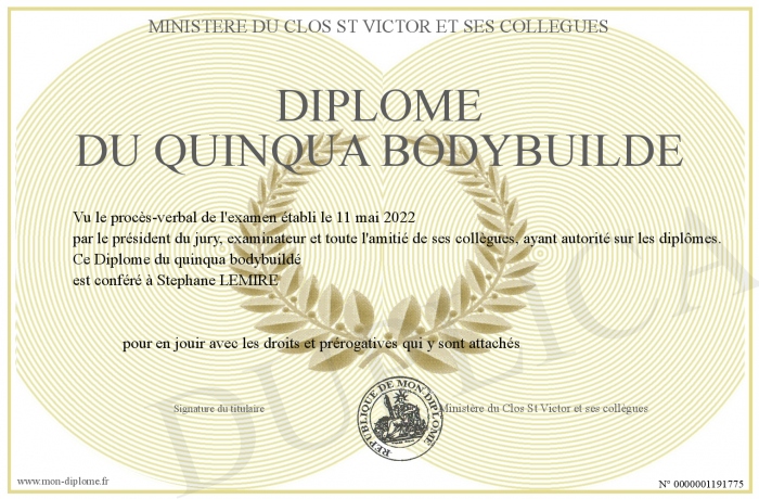 Envoyez par email votre Diplôme du quinqua bodybuildé personalisé