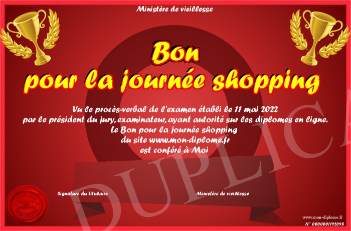 Envoyez par email votre Bon pour la journée shopping personalisé