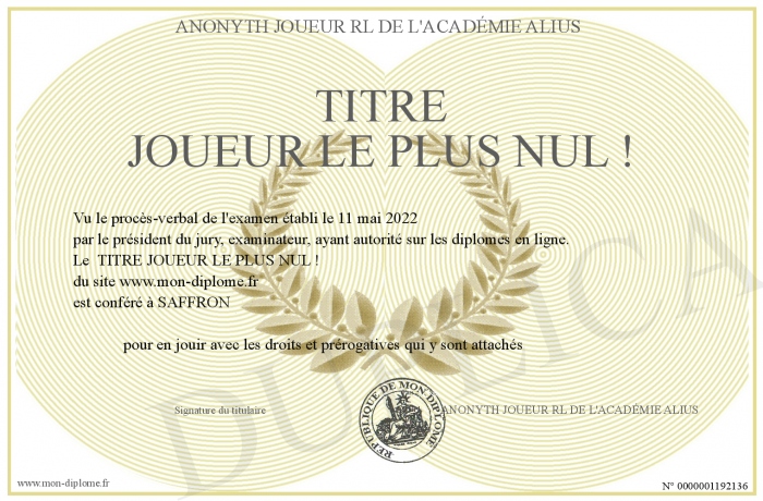 Envoyez par email votre TITRE JOUEUR LE PLUS NUL ! personalisé