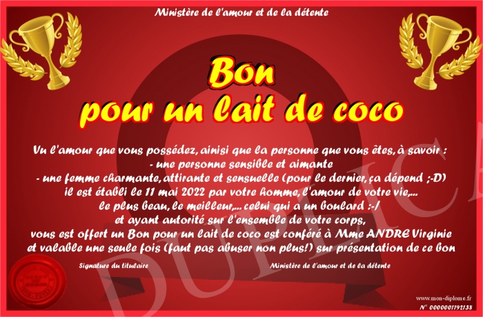 Envoyez par email votre Bon pour un lait de coco personalisé