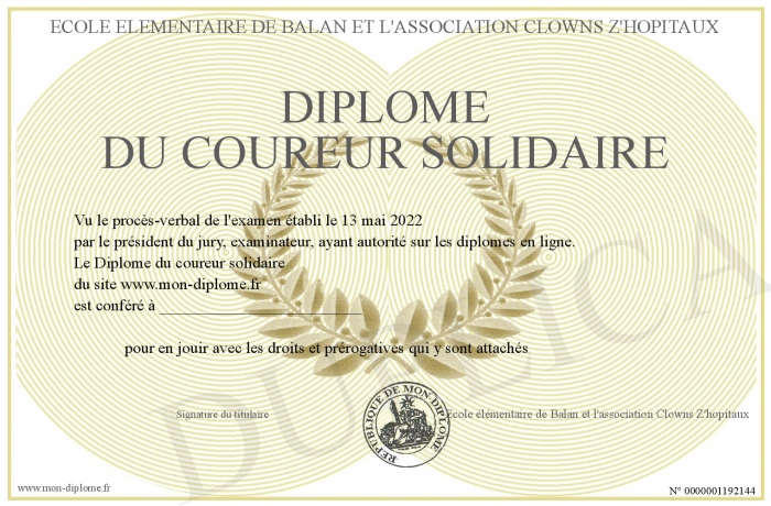 Envoyez par email votre Diplôme du coureur solidaire personalisé