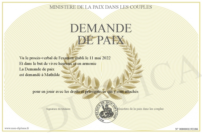 Envoyez par email votre Demande de paix personalisé