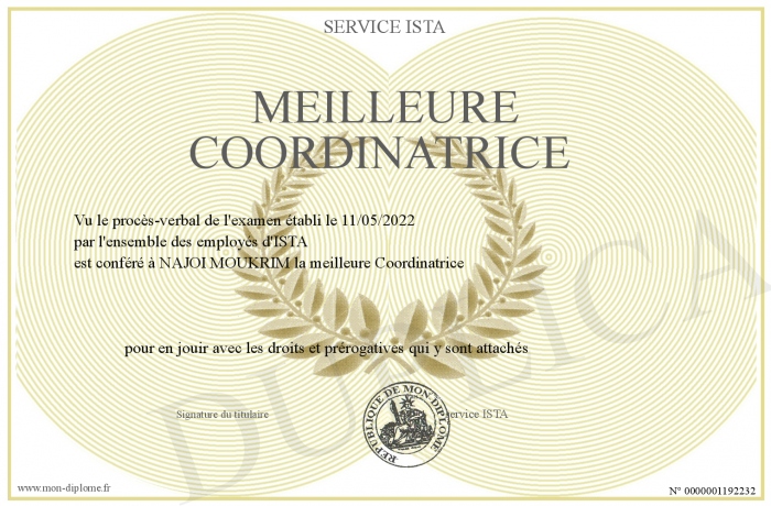 Envoyez par email votre Meilleure Coordinatrice personalisé