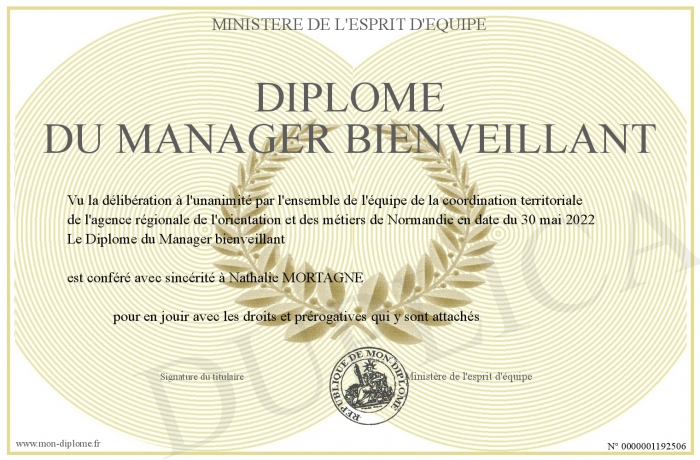 Envoyez par email votre Diplôme du Manager bienveillant personalisé