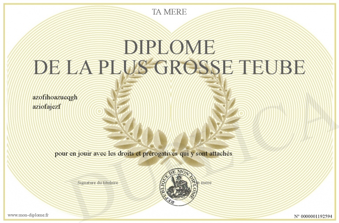 Envoyez par email votre Diplôme de la plus grosse teube personalisé