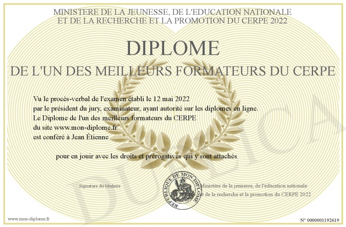 Envoyez par email votre Diplôme de l'un des meilleurs formateurs du CERPE personalisé