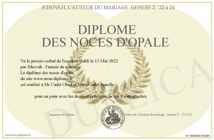 Envoyez par email votre Diplôme des noces d'opale personalisé