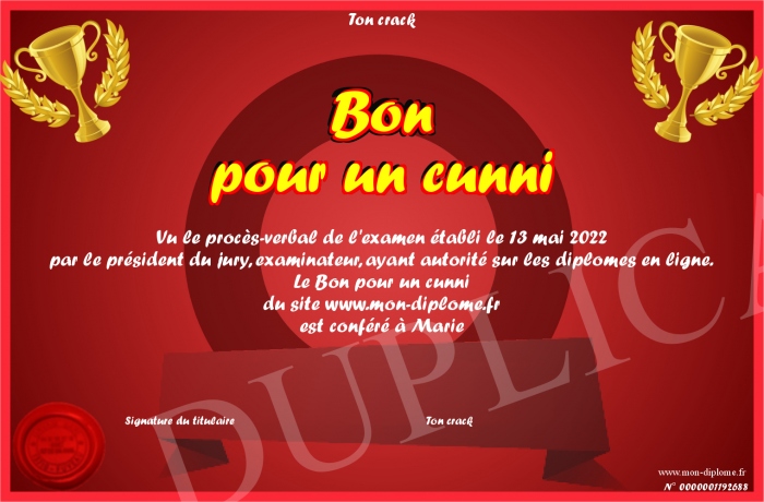 Envoyez par email votre Bon pour un cunni personalisé
