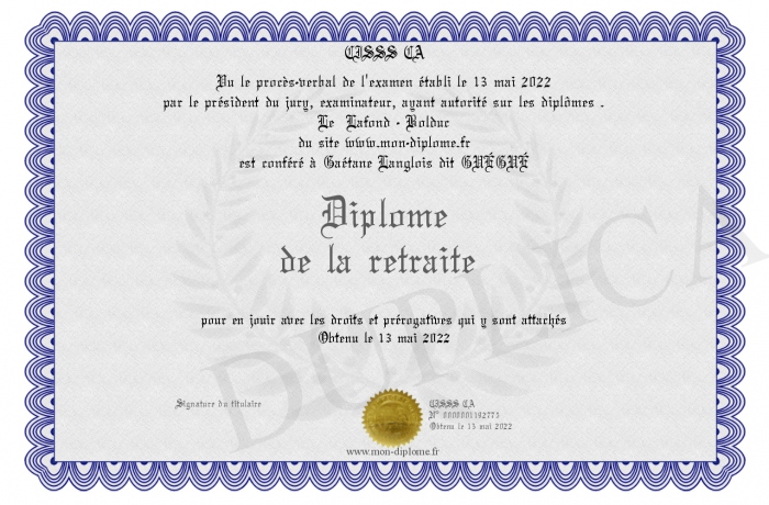 Envoyez par email votre Diplôme de la retraite personalisé